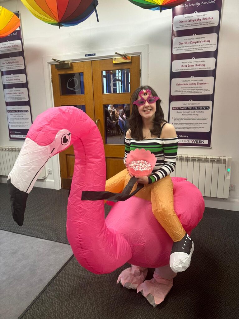 The College was filled with smiles, laughter, and a whole lot of love this Valentine’s Day, thanks to the college’s very own Smile Generators! As part of their ongoing mission to spread positivity, one of our fantastic Smile Generators donned a giant flamingo costume for Flamingo Friday turning heads, lifting spirits, and making everyone’s day a little brighter.